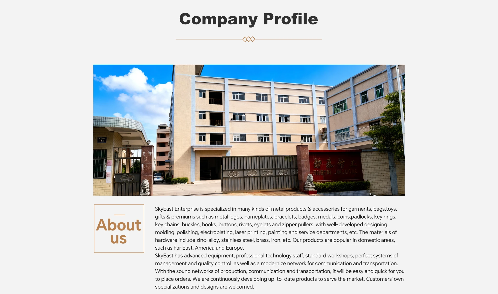 SKYEast have advanced equipment, professional technology staff, perfect systems of management and quality control. We can provide technical & 3D drawings for approval before tooling to make sure products meet customer's desire easily and quickly!